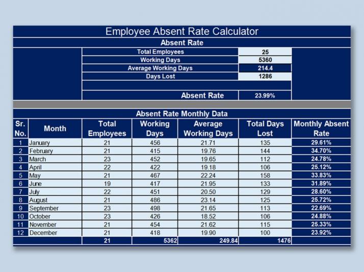 इन विवरणों को प्रदान करने के बाद, आपको अनुपस्थिति दर का औसत गणना होगा।